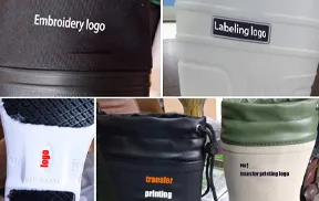 Sole logo, labeling, screen printing, cold transfer printing, embroidery