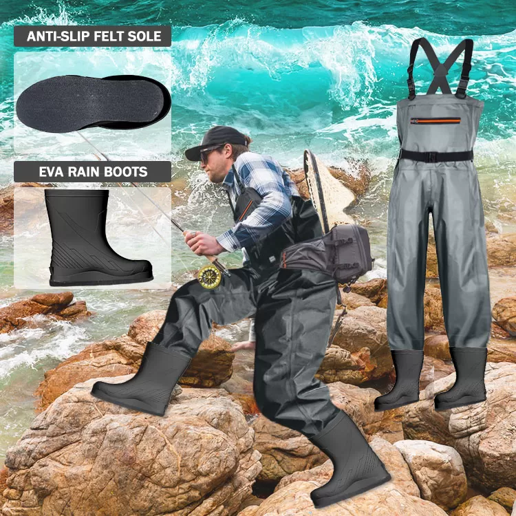 Waterproof Breathable Wader Pants with EVA Boots Set